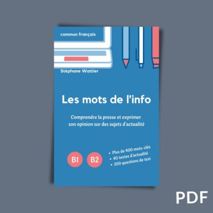 Le vocabulaire de l’actualité aux niveaux intermédiaires (B1 et B2) : plus de 400 mots-clés pour lire la presse et exprimer son opinion.